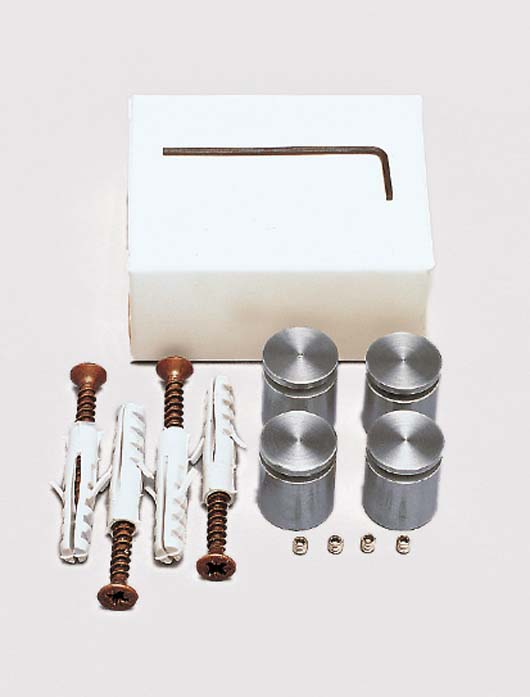 hochwertiger Edelstahl, elegante Facettenoptik, Stecksystem mit manipulationsgeschützter Arretierung für kleine Formate. Halter an der Wand befestigen, Paneel auflegen, Kopf durch das Paneel in den Halter stecken und mit der seitlichen Madenschraube im Halter gegen Manipulation sichern.
