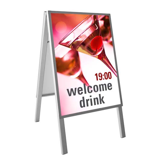 Der Kundenstopper magno satnd biette zwei Info-Flächen mit flexibler Magnetabdeckung: Jede Info lässt sich so schnell und anwenderfreundlich tauschen. Die Drucke sind unter der Abdeckung spritzwassergeschützt. Ein Sicherheitsschanier hält den Aufsteller auf seinen Beinen. Magno stand ist ideal für Shopping malls oder geschützte Eingangsbereiche geeignet. Dieser praktische Kundenstopper ist in zwei verschieden Größen erhältlich.